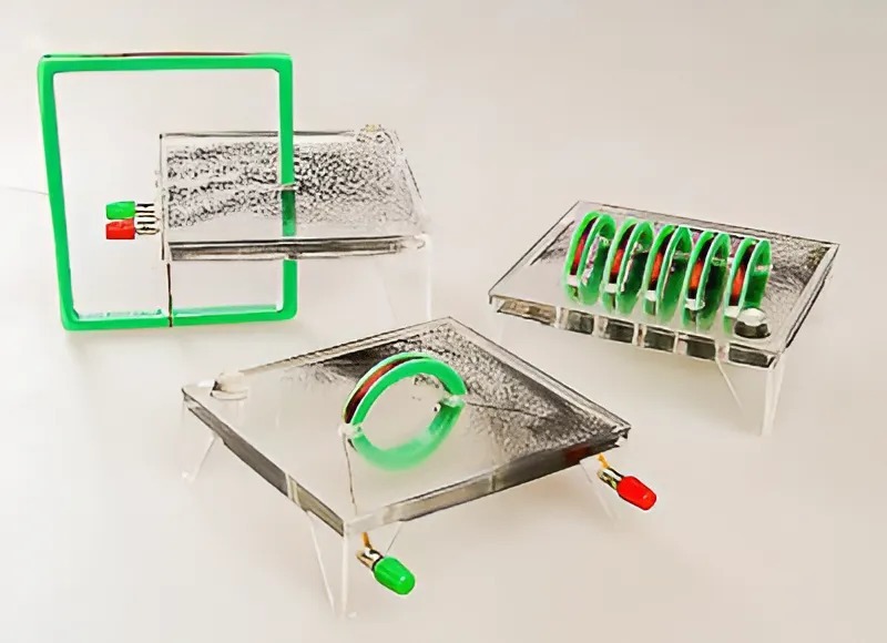 Набор предназначен для демонстрации методом проецирования линий индукции магнитного поля тока в зависимости от формы проводника: прямого, кольцеобразного и катушки.