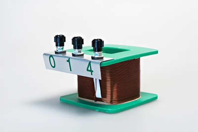 Прибор состоит из катушки с двумя обмотками, соединенными последовательно. Выводы обмоток катушки расположены в верхней части корпуса и маркированы по количеству витков.
