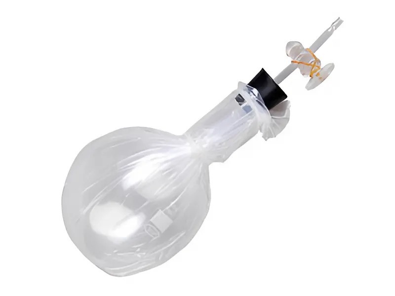 Прибор представляет собой стеклянную колбу емкостью 1000 мл с пробкой и краном. К прибору прилагается полиэтиленовый пакет для предохранения от осколков при возможном разрушении сосуда при откачке воздуха.