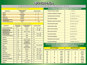 Главная Каталог Демонстрационные учебно-наглядные пособия Кабинет физики Таблица "Международная система СИ. Основные Физические Постоянные. Приставки для образования десятичных кратных и дольных единиц" (100х140 сантиметров, винил)