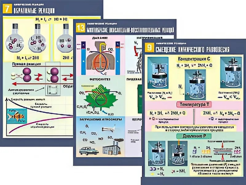 Комплект таблиц по химии демонстрационных "Химические реакции" (14 таблиц, формат А1, ламинированные) - fgospostavki.ru - Зеленогорск