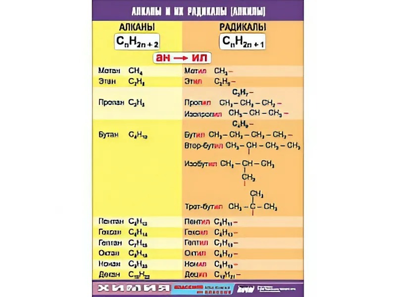 Таблица демонстрационная "Алканы и алкилы" (винил 70х100)