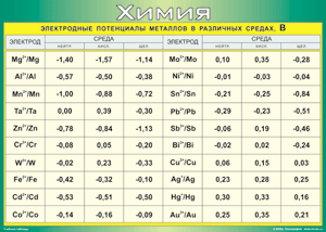 Таблица "Электродные потенциалы металлов в различных средах" (100х140 сантиметров, винил) - fgospostavki.ru - Зеленогорск