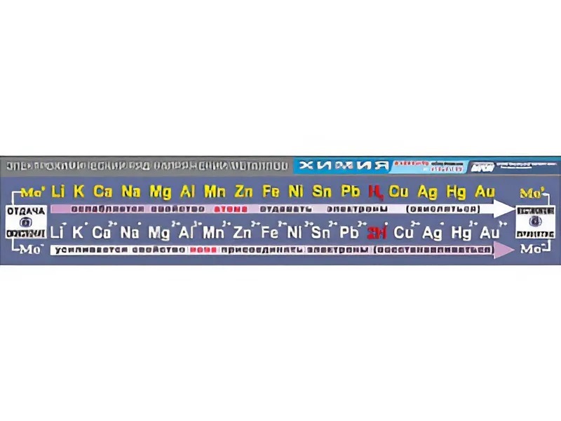 Таблица демонстрационная "Электрохимический ряд напряжений металлов"