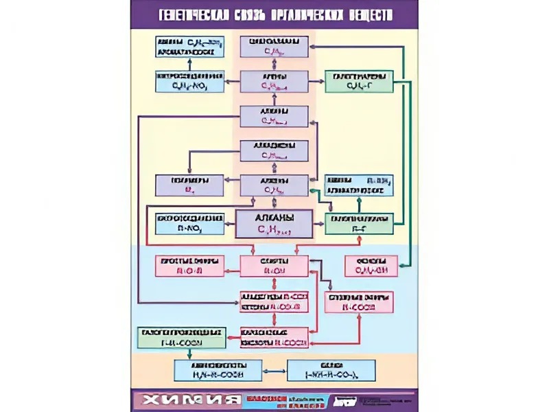 Таблица демонстрационная "Генетическая связь органических веществ" (винил 100x140) - fgospostavki.ru - Зеленогорск