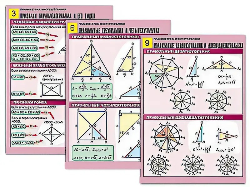 Комплект таблиц по геометрии "Планиметрия. Многоугольники" (10 таблиц, формат А1, ламинированные) - fgospostavki.ru - Зеленогорск