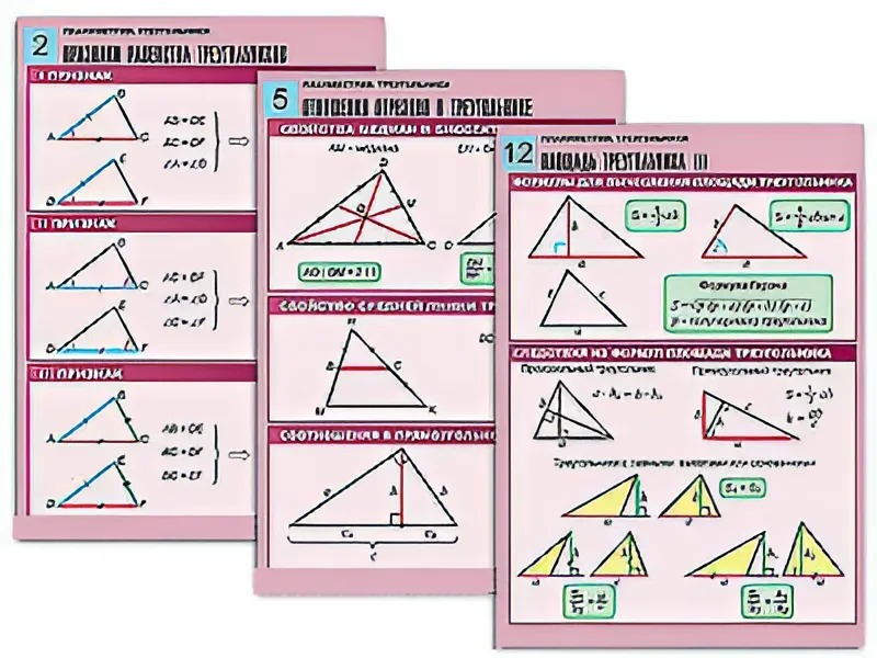 Комплект таблиц по геометрии "Планиметрия. Треугольники" (14 таблиц, формат А1, ламинированные) - fgospostavki.ru - Зеленогорск
