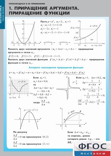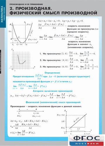Главная Каталог Демонстрационные учебно-наглядные пособия Кабинет математики Комплект таблиц. Математика. Производная и ее применение.