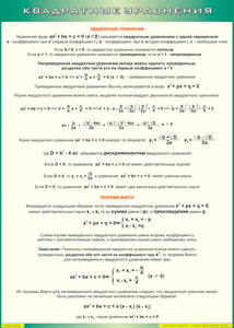 Таблица "Квадратные уравнения" (100х140 сантиметров, винил)