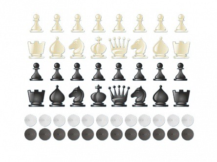 К магнитно-маркерной доске прилагается комплект тематических магнитов "Шахматы-шашки", которые представляют собой фигуры для игры в шахматы и шашки.