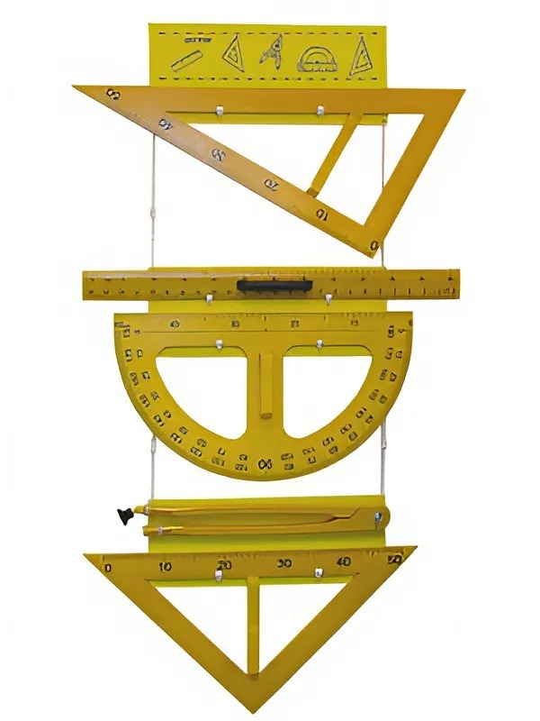 Комплект предназначен для линейных измерений и вычерчивания мелом различных чертежей, схем и рисунков на классной доске.