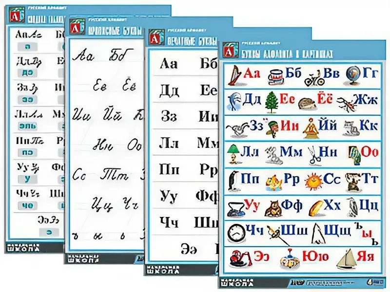 Комплект таблиц "Русский алфавит" (4 таблицы, формат А1, матовое ламинирование) - fgospostavki.ru - Зеленогорск