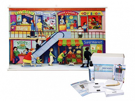 Магнитно-маркерный ситуационный плакат "Магазин" с набором магнитных карточек + методические рекомендации (иностранный язык)