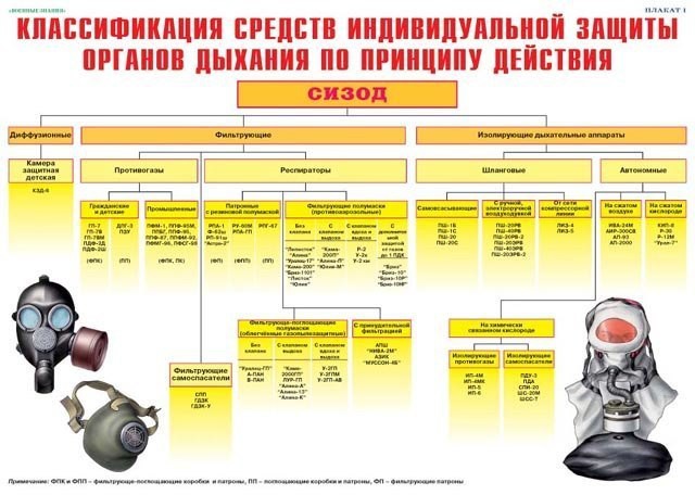Комплект плакатов "Средства защиты органов дыхания. Противогазы, респираторы"