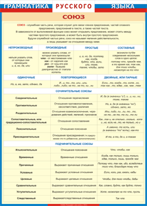 Главная Каталог Демонстрационные учебно-наглядные пособия Кабинет русского языка и литературы Таблица "Грамматика русского языка. Союз" (100х140 сантиметров, винил)