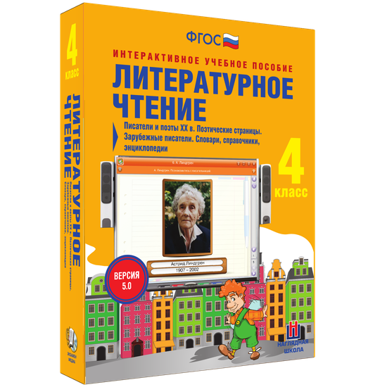 Пособие можно использовать с любыми учебниками, входящими в Федеральный перечень. Интерактивное учебное пособие «Литературное чтение 4 класс. Писатели и поэты XX в. Поэтические страницы. Зарубежные писатели. Словари, справочники, энциклопедии» содержит все темы годового учебного курса по литературному чтению. В каждую тему включены тестовые контрольные задания, интерактивные упражнения на усвоение теоретического материала и на отработку практических навыков. В пособии использованы следующие медиаобъекты: анимации,  аудиосопровождение заданий, интерактивные схемы, установление соответствия  (соединение), последовательности, обобщение, классификация объектов, кроссворды и загадки, озвученный литературный справочник о понятиях и авторах литературных произведений.