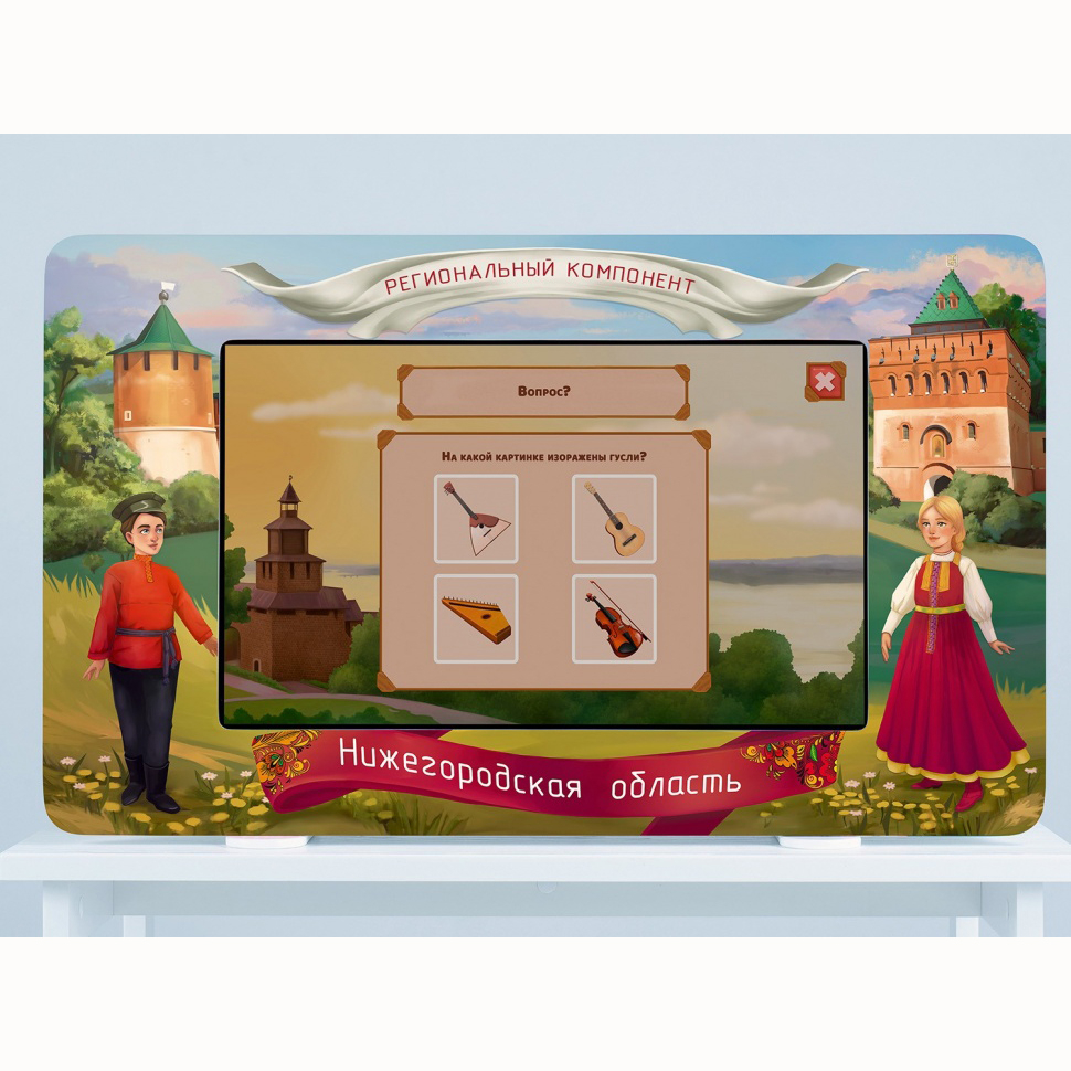 Тематически оформленная интерактивная панель с фирменным программным обеспечением, разработанным для знакомства дошкольников и учеников младших классов с историей и культурой края. Создано для реализации целевой программы РФ «Укрепление единства Российской нации и этнокультурного развития народов России».