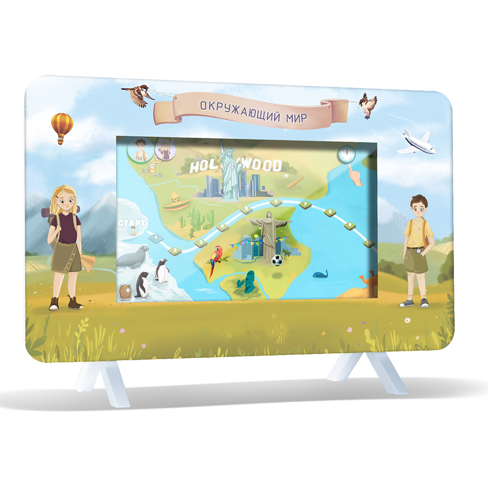 На художественно оформленной игровой сенсорной панели, помимо программного обеспечения «География», установлено «Дошкольное образование», включающее более 80 обучающих игр и 110 тестов, направленных на развитие памяти, внимания, логики, на изучение счета и английского языка. Прохождение всех игр гарантирует появление у ребенка базового представления об окружающем его мире.