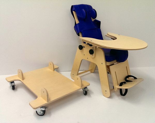 Кресло поставляется с фиксирующим поясом с лямками, мягкими подголовниками, регулирующимися по высоте и ширине спинки, абдуктором, подставкой для ног.Также в комплект входит съемный столик, который может быть использован для различных игр и занятий, а также для приема пищи.