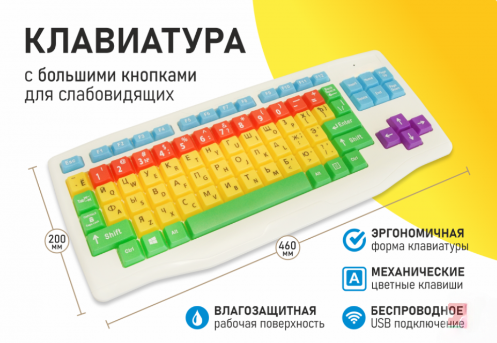 Клавиатура с большими кнопками для слабовидящих или с ДЦП