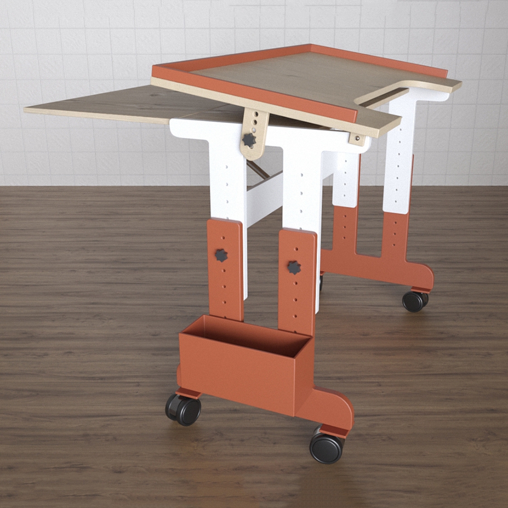 Детский стол «Доступная среда» №2 – это предмет мебели первоочередной необходимости для обустройства школ и центров с инклюзивной формой обучения; нужен для занятий с детьми, имеющими проблемы с самостоятельным передвижением и заболеваниями опорно-двигательного аппарата. Ножки стола регулируются по высоте, а столешница оснащена бесступенчатой регулировкой угла наклона; есть место для хранения письменных принадлежностей или вещей учащегося. Имеется также дополнительное место напротив для педагога или тьютора. Станет отличным дополнением к стулу для детей с ОВЗ. Конструкция стола была разработана с учётом всех особенностей и нюансов потребностей детей с ОВЗ.