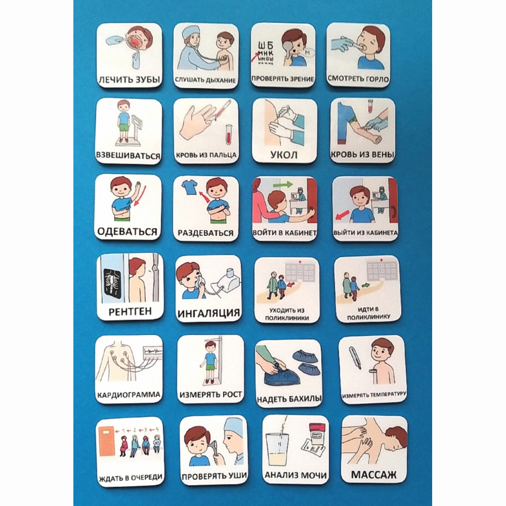 Карточки PECS – система альтернативной коммуникации для детей, у которых трудности с речью и общением. Карточки "К ВРАЧУ" помогут вашему ребенку в повседневной жизни и в школе, уменьшат неприемлемое поведение, способствуют улучшению взаимопонимания. Они пригодны для использования в коммуникативных книгах и визуальных расписаниях.