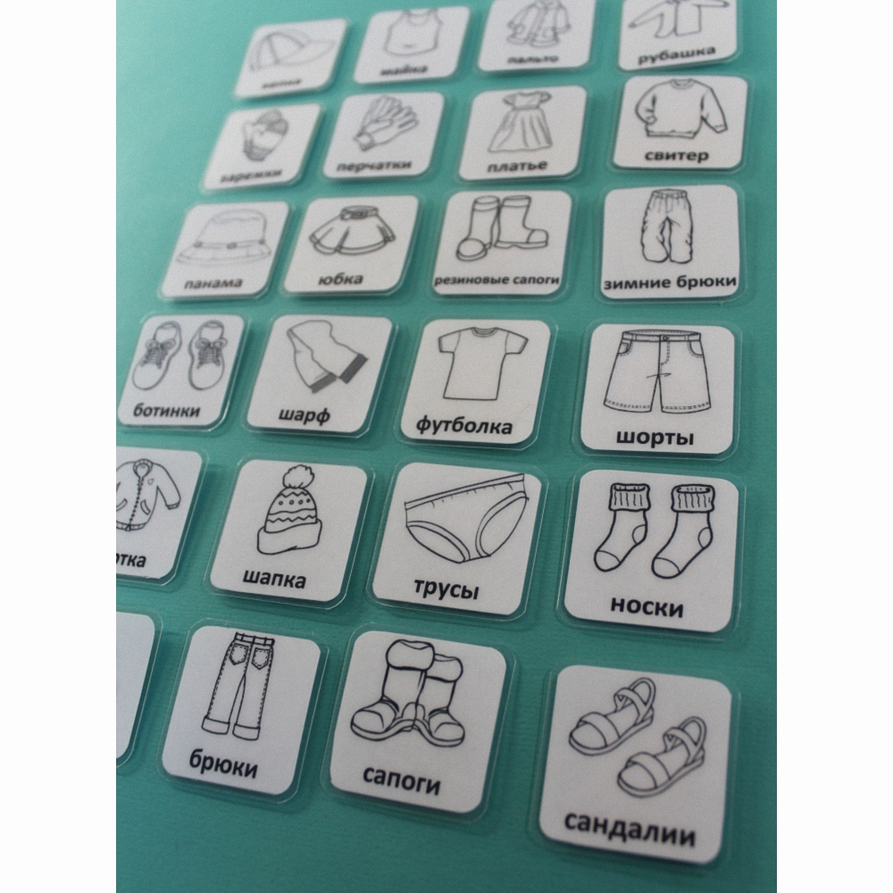 Карточки PECS – система альтернативной коммуникации для детей, у которых трудности с речью и общением. Карточки "ОДЕЖДА" (черно-белые контурные изображения) помогут вашему ребенку в повседневной жизни, уменьшат неприемлемое поведение, способствуют улучшению взаимопонимания. Они пригодны для использования в коммуникативных книгах и визуальных расписаниях.