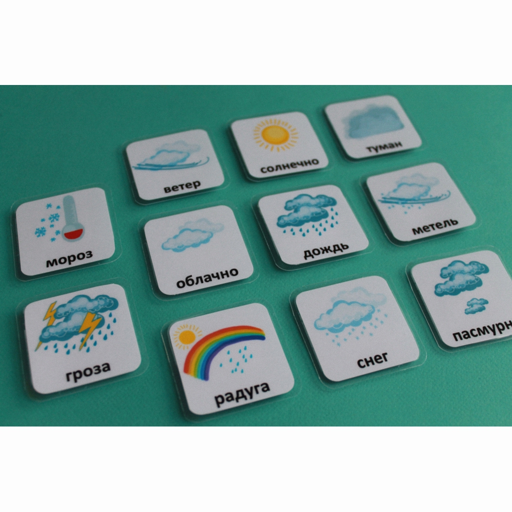 Карточки PECS – система альтернативной коммуникации для детей, у которых трудности с речью и общением. Карточки "Погода" (с рисунками) помогут вашему ребенку в повседневной жизни, уменьшат неприемлемое поведение, способствуют улучшению взаимопонимания. Они пригодны для использования в коммуникативных книгах и визуальных расписаниях. В качестве изображений на карточках используются рисунки погодных условий.