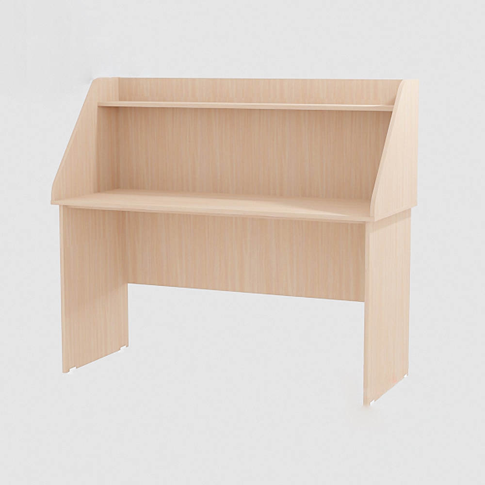 Изделие оптимального размера. Большая и удобная столешница позволяет разместить все необходимые предметы так, чтобы они не мешали работе. Сверху расположена полка, на которой легко разместятся небольшие предметы, например, канцелярия. Также туда можно поставить предмет декора для красоты.
