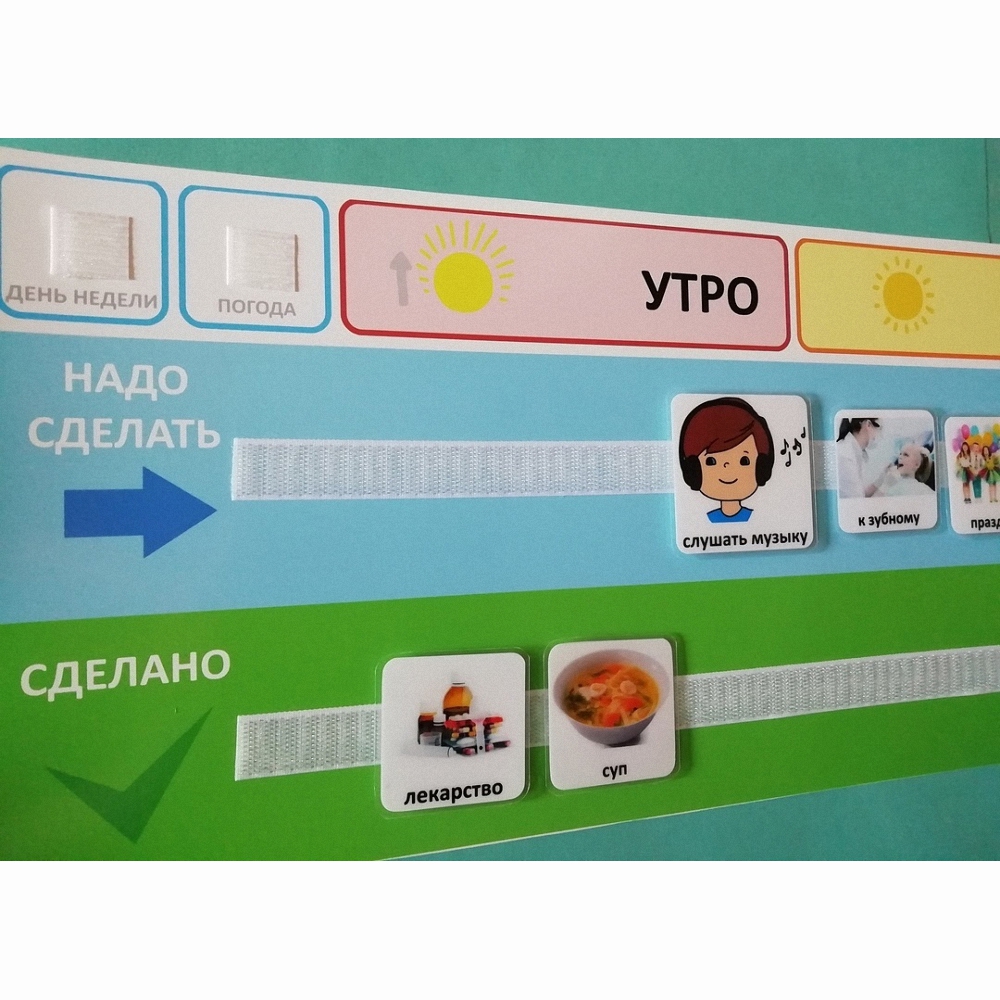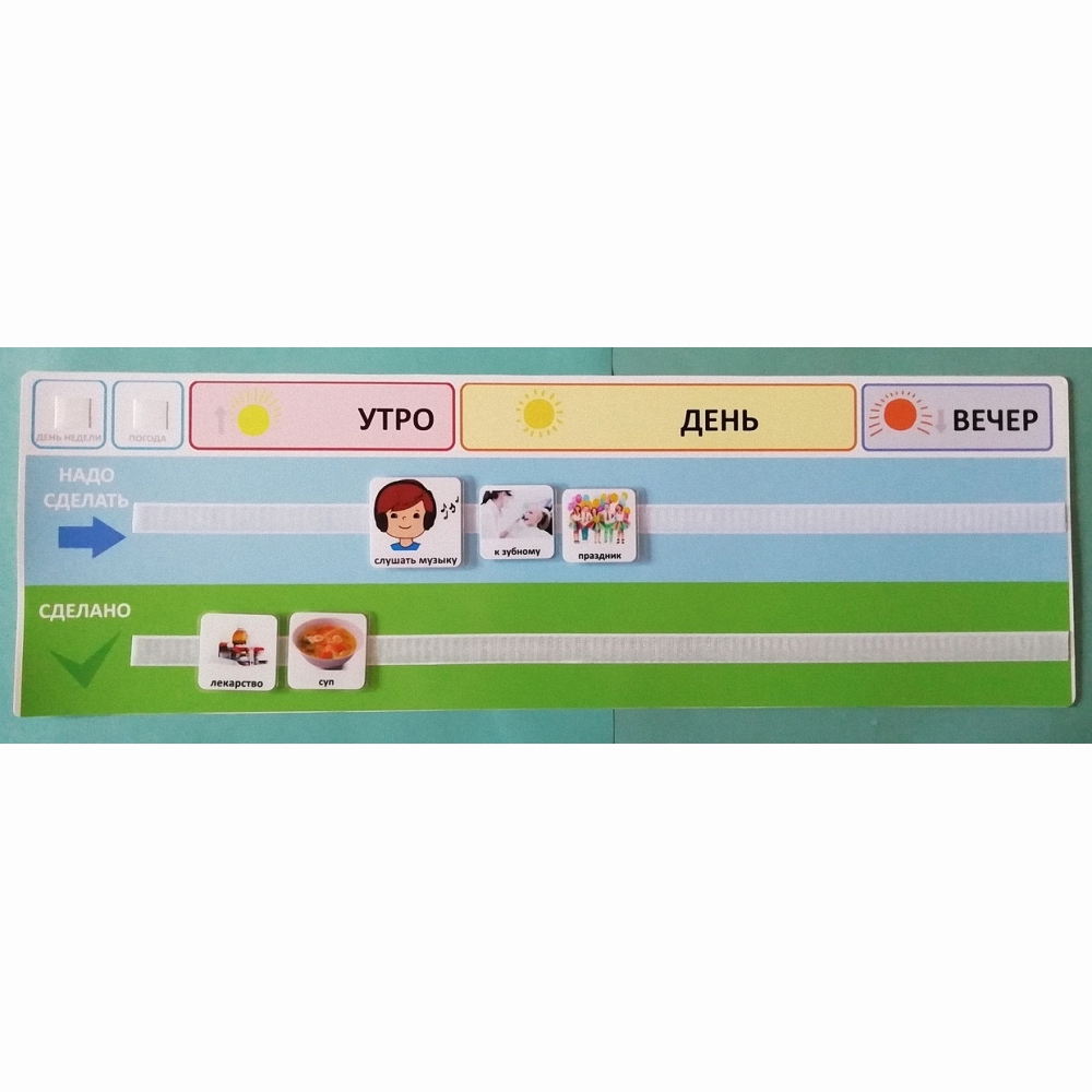 Для детей визуальное расписание – это способ удержать в поле внимания все занятия и действия, которые нужно совершать в течение дня.