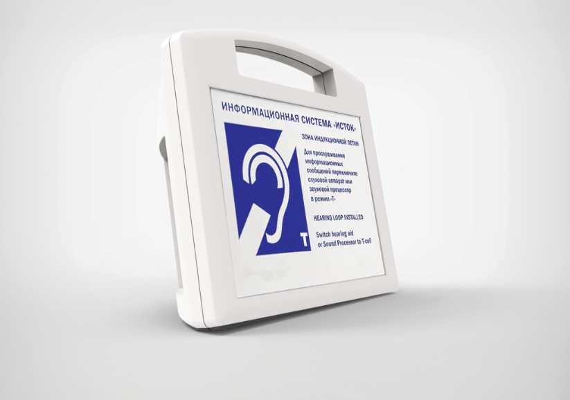 Система информационная переносная предназначена для передачи аудиоинформации лицам с нарушенной функцией слуха при повышенном уровне окружающего шума или при наличии преграды между собеседниками в общественных и многолюдных местах, в зонах обслуживания населения (возле стоек информации, кассах).