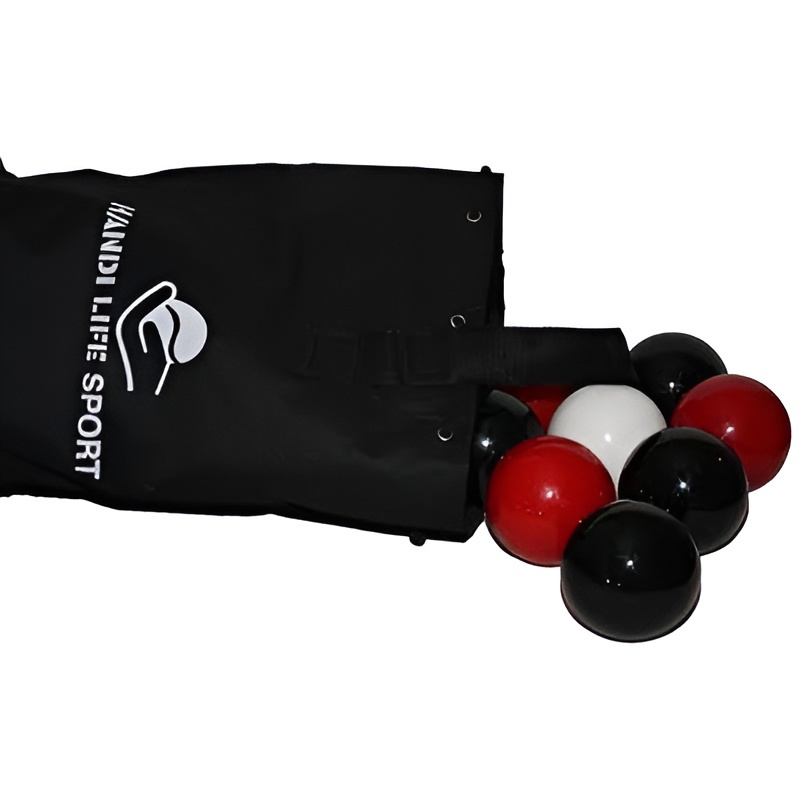 13 твердых литых мячей из первоклассного синтетического материала. Поставляется в нейлоновой мягкой сумке.