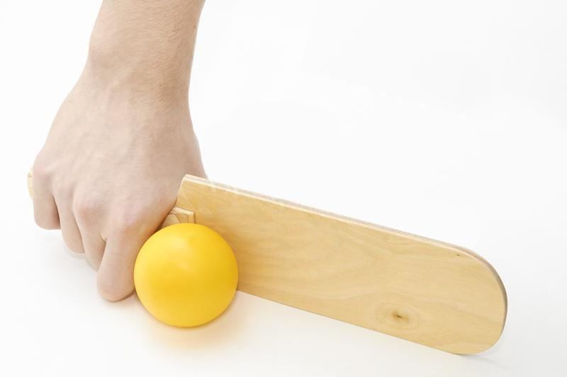 Конструкция ракетки имеет прямоугольную форму, не имеет прорезиненного покрытия и выполнена целиком из дерева, которое в отличии от резины не способно поглощать звук.