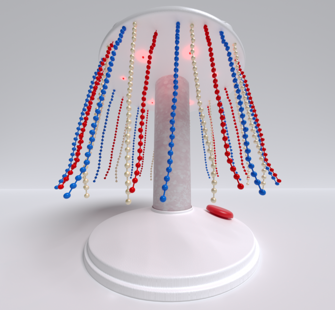 Игра «Карусель с цепочками» создана для веселых игр и сенсорного насыщения детей с ограниченными возможностями здоровья; поможет обучить ребенка внимательности и развить у него причинно-следственные связи. Представляет из себя карусель, на купол которой подвешены цепочки из бусинок. Изготовлено из высококачественного ударопрочного пластика, имеет обтекаемые плавные формы без острых краёв и углов.