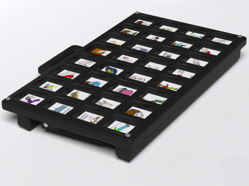 Смарт 32 игровой коммуникатор создан для развития детей, имеющих проблемы со слуховым, зрительным, тактильным восприятием и коммуникацией. Прямоугольный корпус имеет компактный размер и ручку для удобной транспортировки, оснащен 32 кнопками с кармашками для демонстрационных изображений. Каждая из кнопок предназначена для записи и воспроизведения голосовых сообщений, имеет 6 уровней записи, длина каждого сообщения – 10 секунд. Устройство изготовлено из высококачественного ударопрочного пластика, имеет обтекаемые плавные формы без острых краёв и углов.