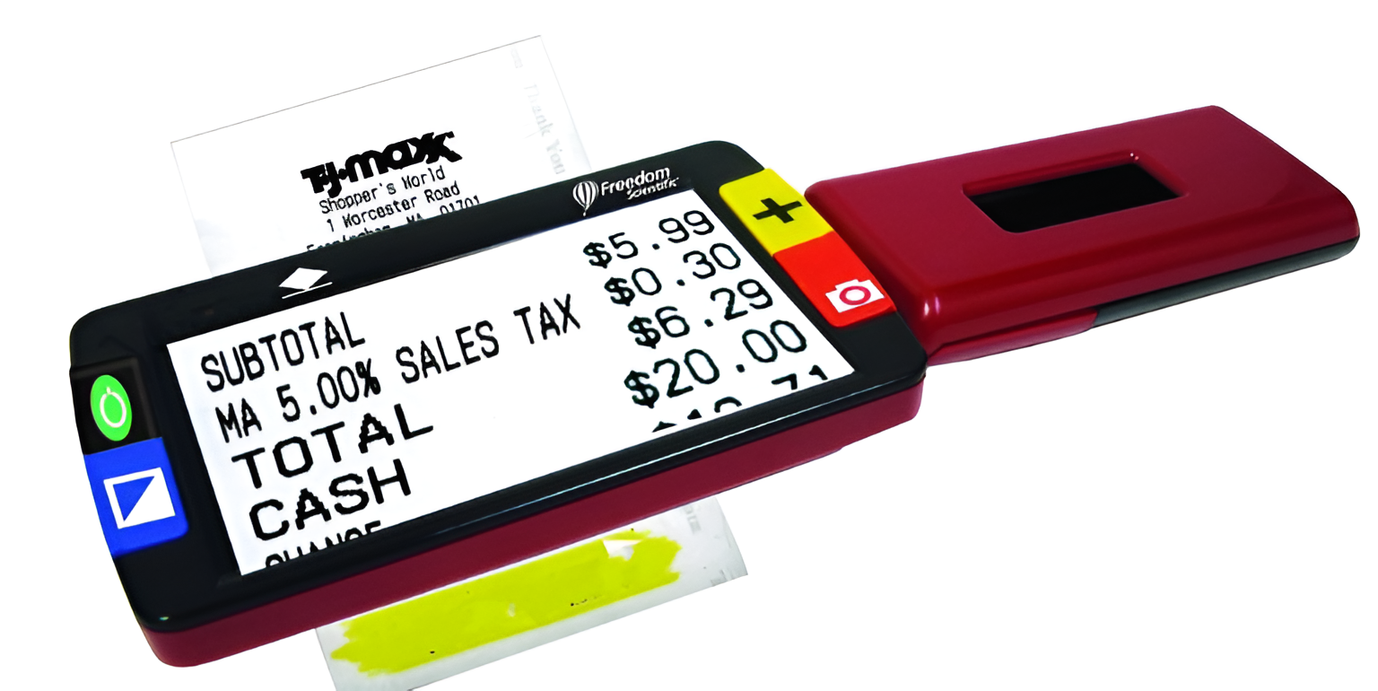 Маленький, легкий, эргономичный, умещающийся в кармане электронный ручной видеоувеличитель.