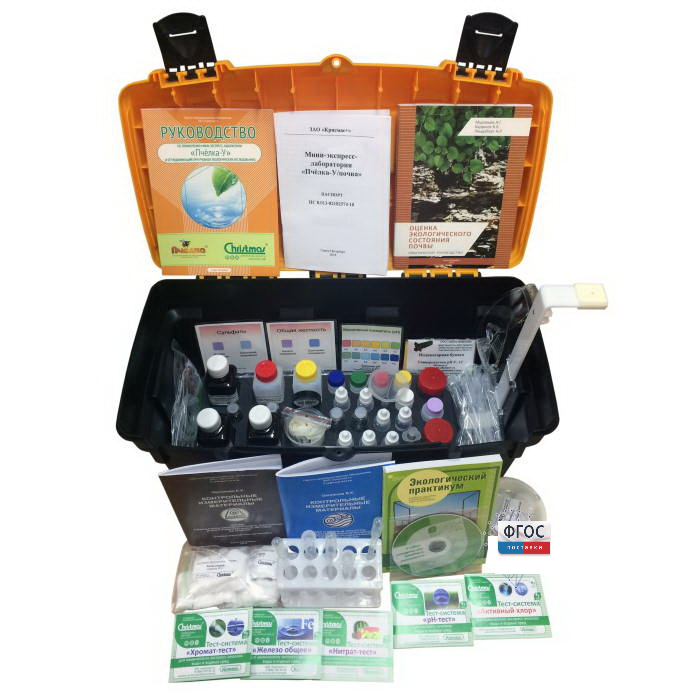 Мини-экспресс-лаборатория «Пчёлка-У/почва» представляет собой функционально-целостный набор индикаторных средств, специальных реактивов, вспомогательного оборудования и приспособлений.