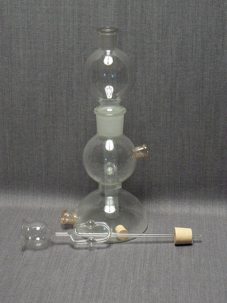 Прибор выполнен из стекла, и состоит из сосуда объёмом 250мл, в нижней части которого имеется перетяжка и шарообразной воронки, сообщающихся между собой. Когда воронка вставлена в сосуд, между ее трубкой и перетяжкой сосуда получается зазор, через который полушар сообщается с шаром. Сообщение прибора с внешней средой осуществляется благодаря тубусу. Отбор газа из сосуда осуществляется через пробковый кран.