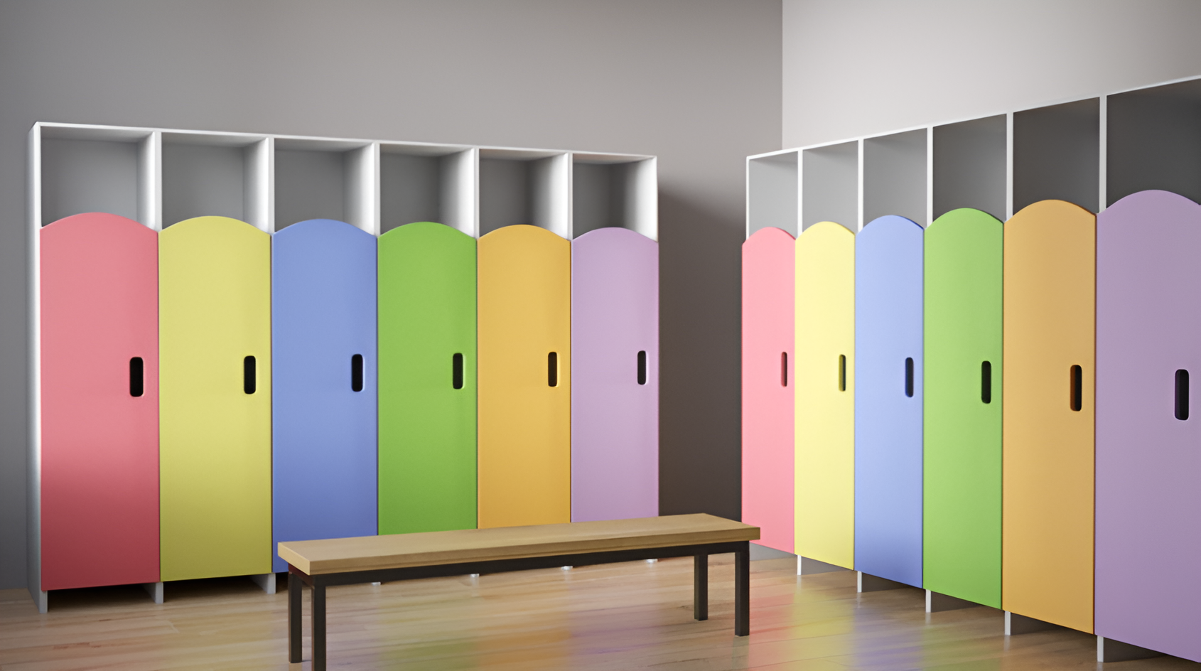 Детский гардероб создан для детей разных возрастов. Предназначен для развивающих студий, школ, детских садов, реабилитационных центров и конечно для детских домов. Помогает детям с раннего возраста вырабатывать полезные качества в виде умений хранить все на своих местах. Яркие, нежные цвета гардероба позволяют с первых минут привлечь внимание детей, что способствует стимуляции поддержания порядка, а также самостоятельности.