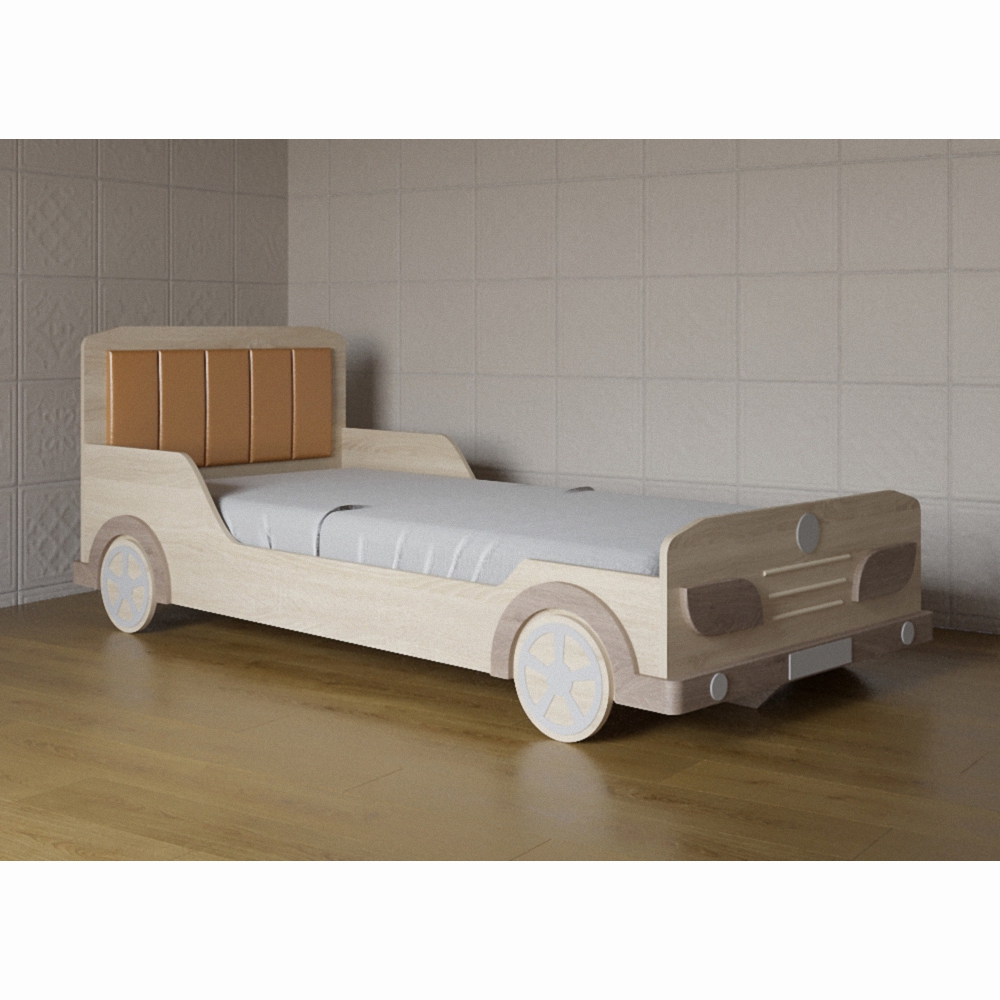 Односпальная кровать-машинка предназначена для детей от 3 до 10 лет. Имеет форму машинки с колесами, фарами, решеткой бампера и прочими деталями. Она, несомненно, приведет в восторг любого ребенка. Выполнена в нейтральной цветовой гамме, что позволяет использовать ее как для девочки, так и для мальчика. Изголовье кровати частично мягкое, обито композиционной кожей для удобного использования и большей безопасности ребенка. Конструкция кровати надежна и прочна – это гарантирует безопасную эксплуатацию.