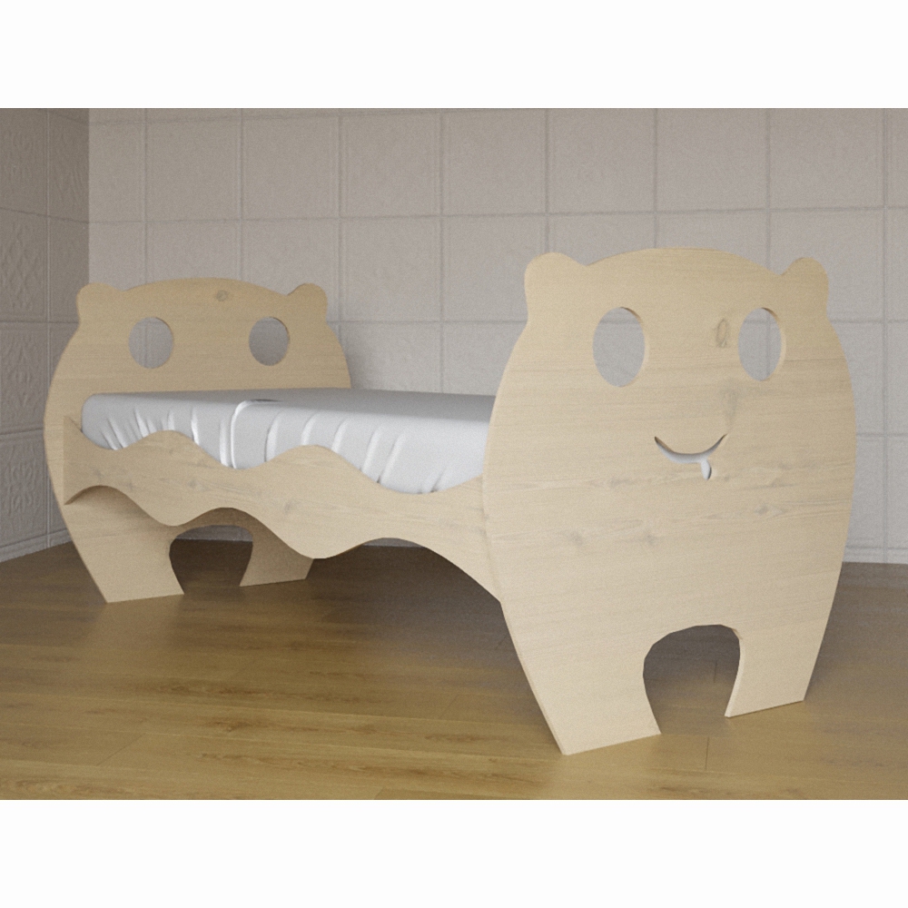 Эта кровать предназначена для детей от 3 до 10 лет. Внешний вид кровати не назовешь стандартным, и уж тем более скучным – она, несомненно, понравится любому ребенку, ведь торцы кровати украшены контурными объемными изображениями мордочки медвежонка. Выполнена в нейтральной цветовой гамме, что позволяет использовать ее как для мальчика, так и для девочки. Конструкция кровати надежна и прочна – это гарантирует безопасную эксплуатацию.