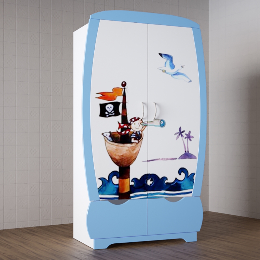 Шкаф детский создан в нежно голубом цвете, что нравится мальчикам. Помогает детям с раннего возраста вырабатывать полезные качества в виде умения хранить все на своих местах. Универсальный гардероб позволяет с первых минут привлечь внимание детей, что способствует стимуляции поддержания порядка, а также самостоятельности.