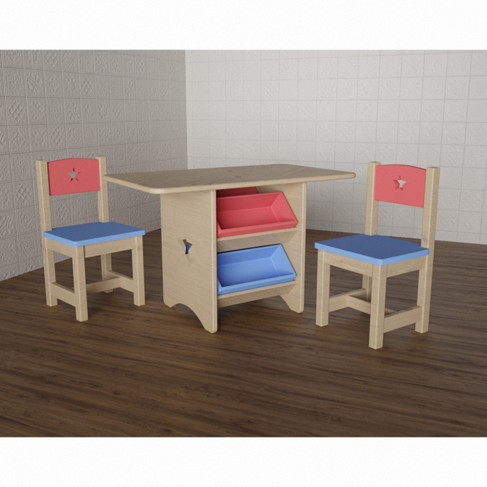 Детский стол «Звёздочка» станет красивым и полезным дополнением вашей детской комнаты. Он укомплектован четырьмя ящиками для хранения игрушек либо письменных принадлежностей ребенка. Помимо занятий и творчества этот стол поможет привить ребенку навыки уборки. Стол имеет два посадочных места. Он безопасен, так как все углы стола округлены во избежание травм о них ребенка. Стол выполнен в приятной цветовой гамме и изысканном дизайне с декоративными отверстиями на корпусе в виде звездочек. Предназначен стол для детей от 3-х лет.