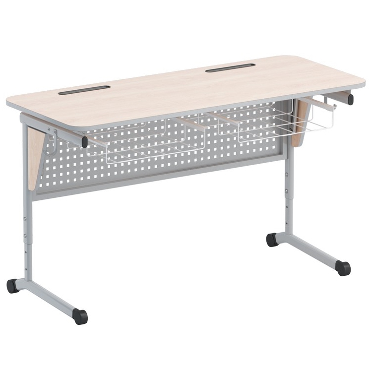 Стол ученический двухместный с перфорированной панелью, наклоном столешницы (0-24°) и корзиной - fgospostavki.ru - Зеленогорск