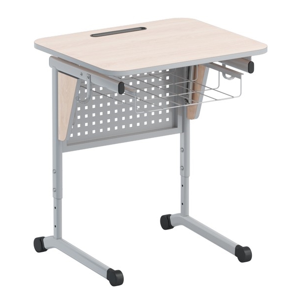 Стол ученический одноместный с перфорированной панелью, наклоном столешницы (0-24°) и корзиной