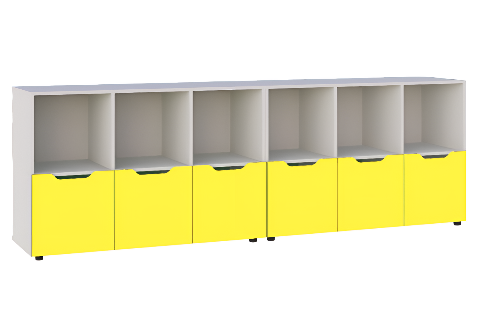Стеллаж модульный Tengri состоит из открытых полок и выдвижных ящиков. Оснащен пластиковыми регулируемыми ножками.