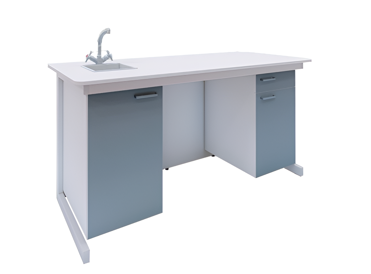 Стол демонстрационный для кабинета химии (биологии) состоит из корпуса на металлокаркасе. Металлические детали окрашены порошковой полимерной краской стойкой к ударам.