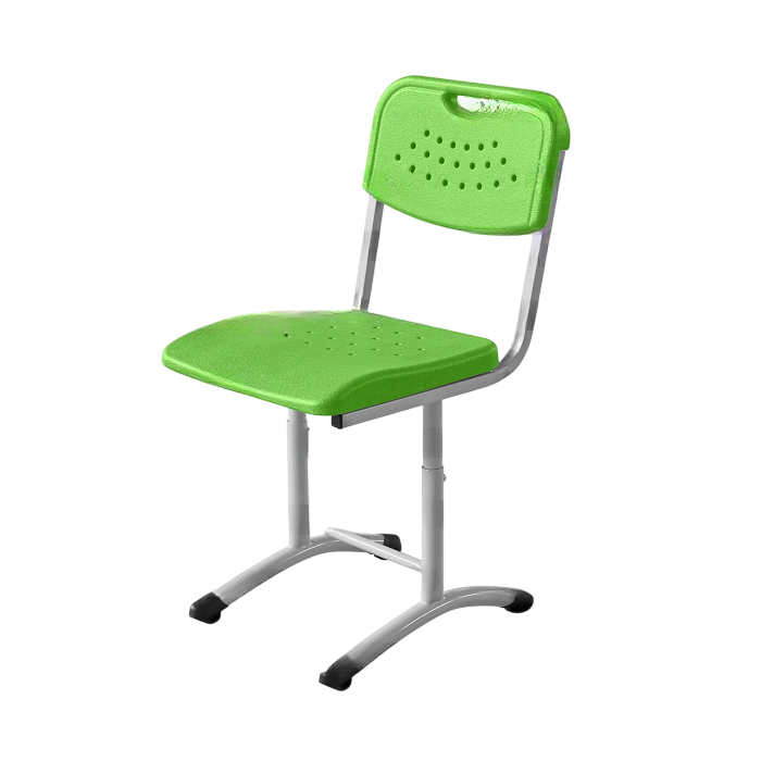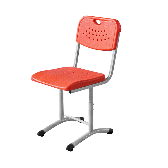 Школьный стул имеет стальной каркас, сиденье и спинку из утолщённого антивандального пластика.