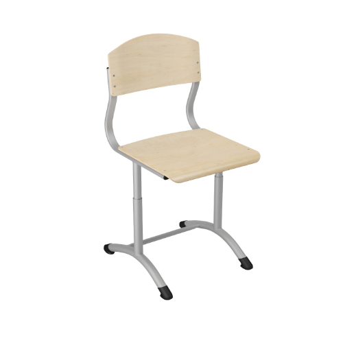 Стул регулируется по высоте на 4-6 группы роста (380, 420, 460 мм), или на 3-5 группы роста (340, 380, 420 мм).. Сиденье и спинка изготовлены из гнутоклееной фанеры с учетом требований эргономики, покрыты бесцветным лаком, крепятся к металлическому каркасу при помощи заклепок. Размеры сиденья 380*375 мм, спинки 380*175 мм. Металлокаркас изготавливается из труб круглого и плоскоовального сечения, окрашен износостойкой порошковой краской. Торцы труб закрыты пластиковыми заглушками, снабжены пластиковыми подпятниками от повреждения напольного покрытия. Механизм регулировки - телескопическое соединение с жесткой фиксацией при помощи 4-х винтов (по два на каждой стороне) на ростовые группы, травмобезопасный.