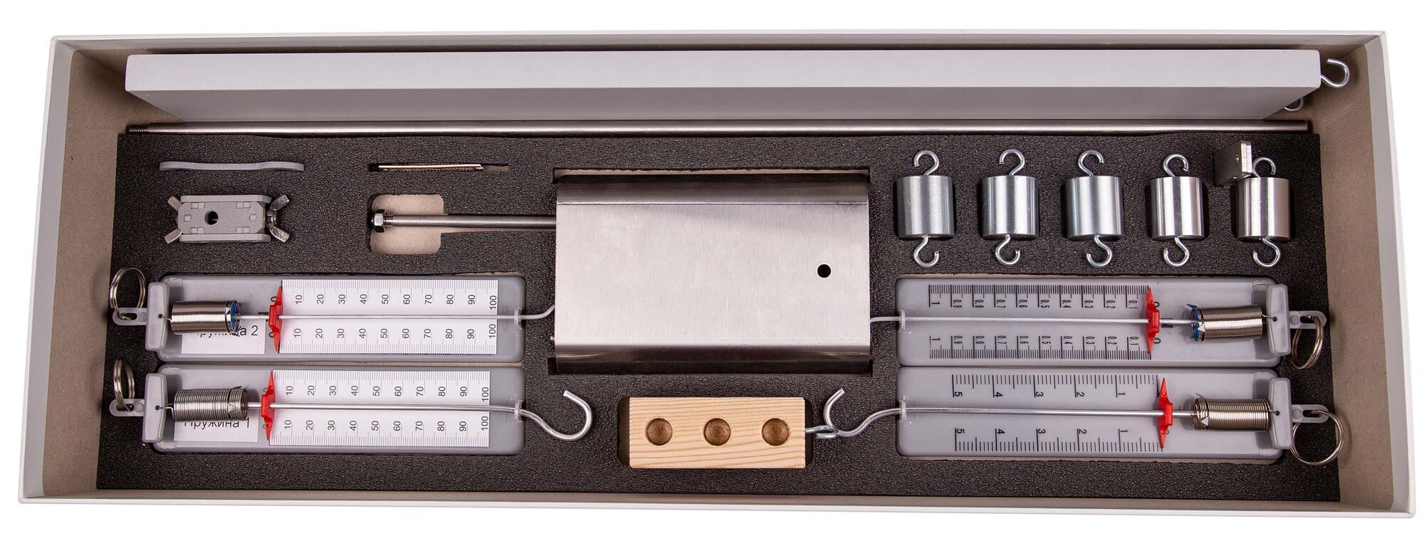 Комплект позволяет измерять жесткость пружины, коэффициент трения скольжения, работу силы трения и силы упругости, а также исследовать зависимость силы трения скольжения от силы нормального давления и от рода поверхности, зависимость силы упругости, возникающей в пружине, от степени деформации.